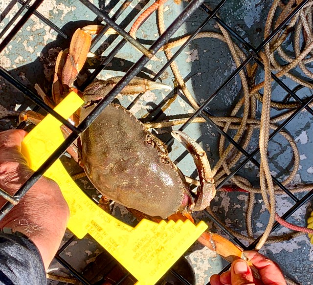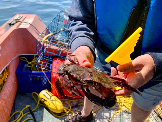 - handle the crabs and check for sizing and sex of the crabs